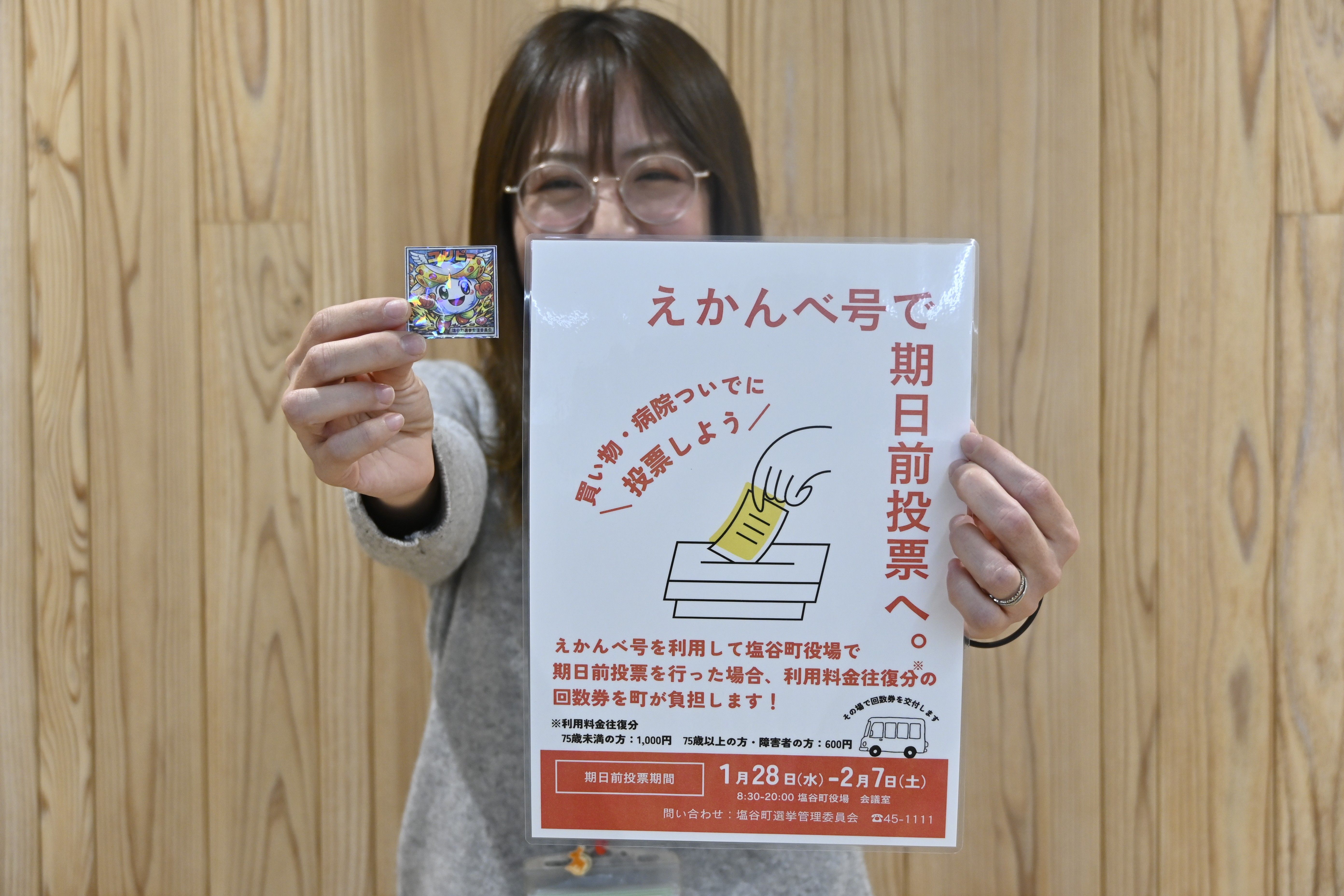 チラシを手に新潟物産展をPRする二宮さん=28日午後、下野新聞社
