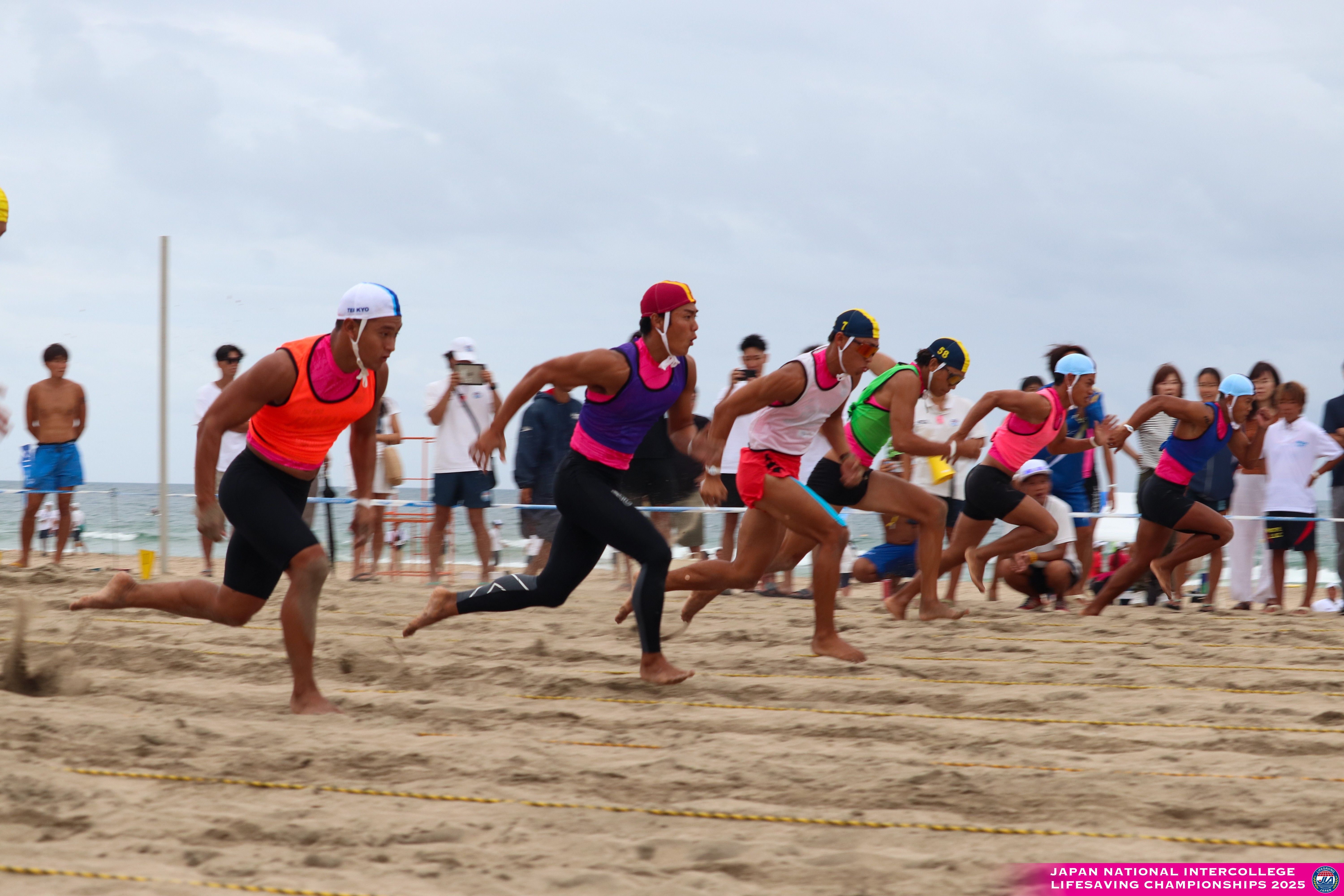 ビーチスプリント男子決勝で走る福田さん(左)=日本ライフセービング協会提供