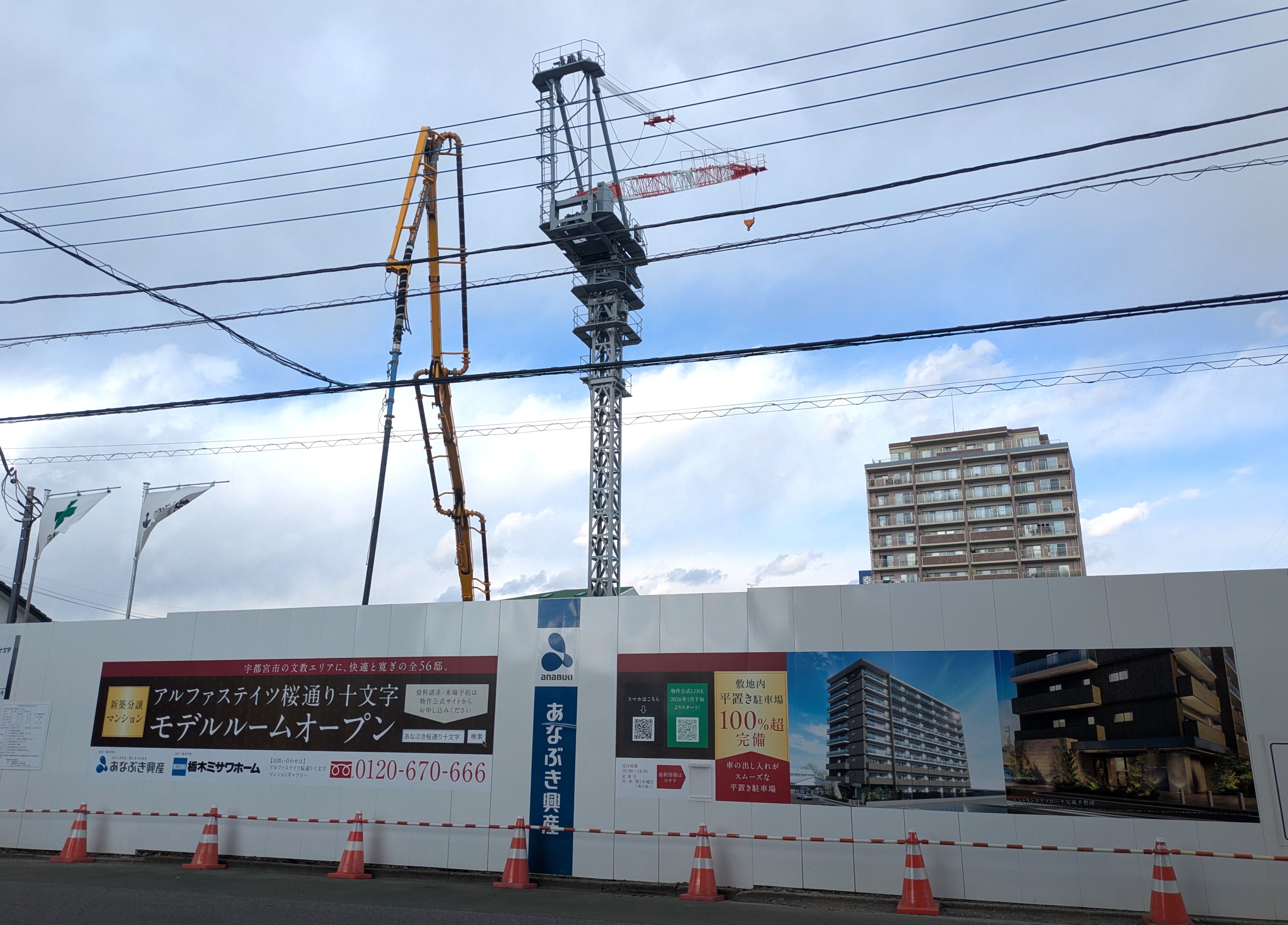 「アルファステイツ桜通り十文字」の建設現場=29日午後、宇都宮市桜3丁目