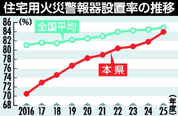 栃木県内の住宅火災警報器設置率84.0%、15年連続で全国平均割れ リスク高まる冬場、県が設置・点検呼びかけ