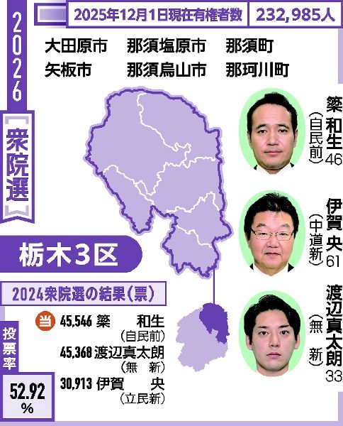 再び保守分裂、接戦予想 3区 中道、公明票取り込みへ 衆院選 栃木県内5選挙区、戦いの構図