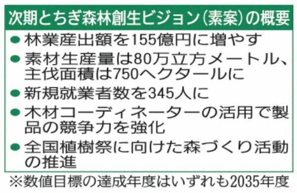 栃木県の林業産出額、2035年度に155億円 23年度の1.4倍目標 県の次期森林創生ビジョン素案