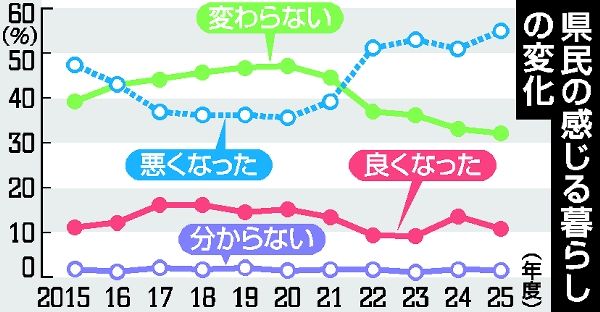 栃木県民の55%が「暮らし向き悪化」 4年連続で5割超、最多要因は物価上昇 25年度県政世論調査