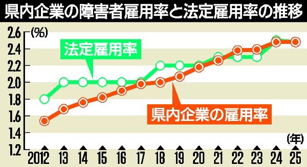 栃木県内企業の障害者雇用率2.50% 14年連続過去最高、2年ぶり法定達成 未達成企業の6割超は障害者ゼロ