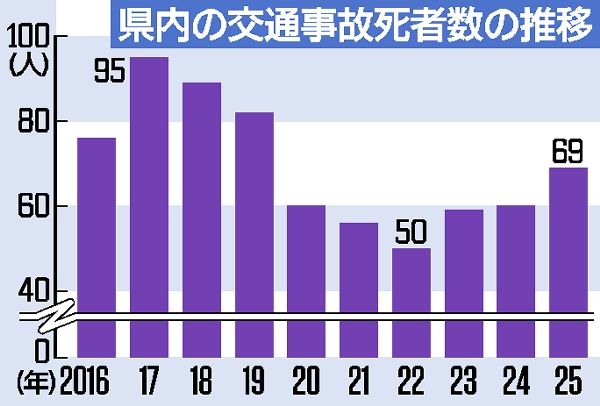 栃木県内、2025年の交通事故死者69人 3年連続増加、10万人当たり全国ワースト6位