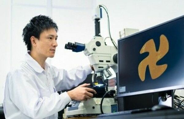 早ゆでスパゲティの断面形状を確認する日清ウェルナの開発者