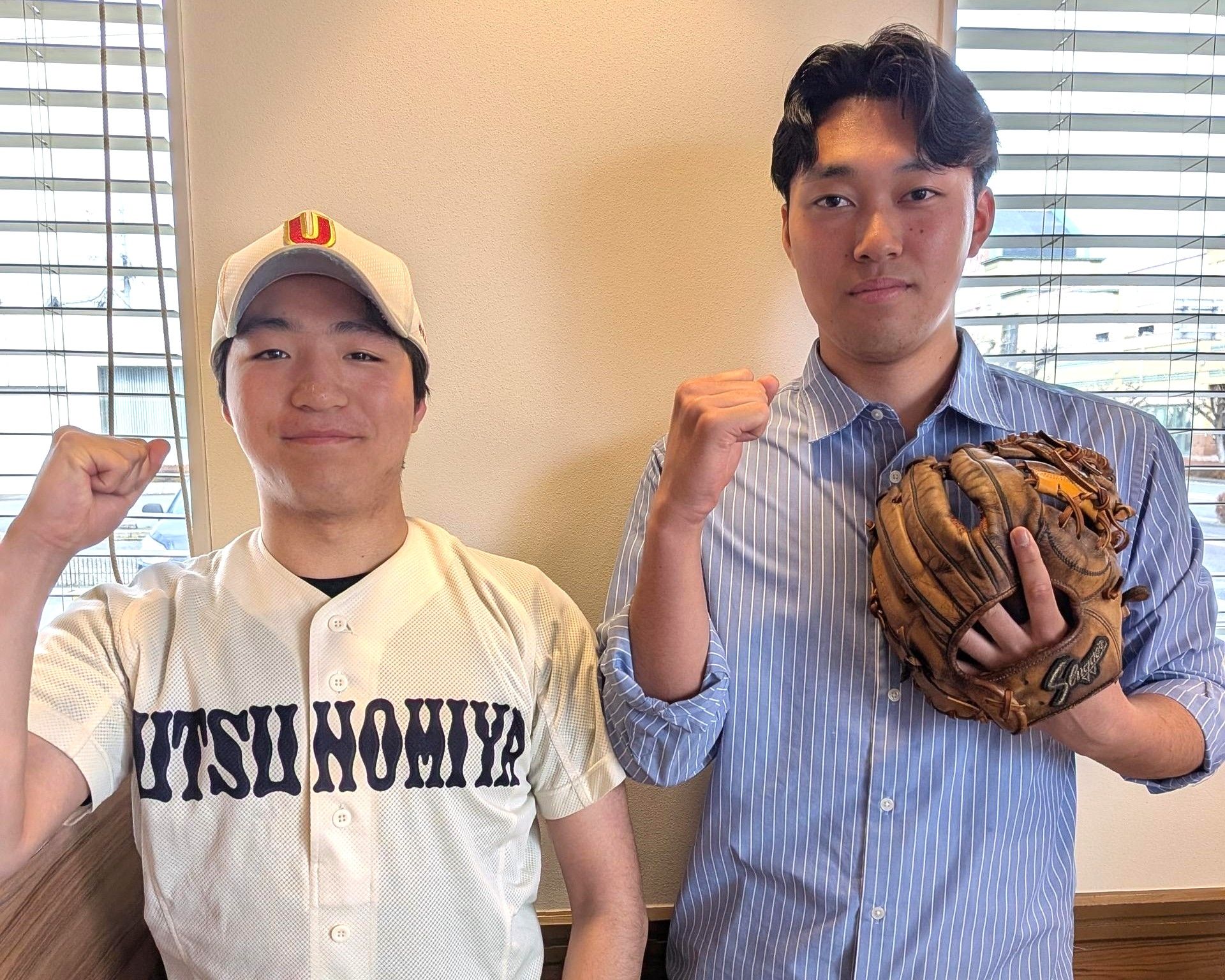 東京大硬式野球部に入部した藪井さん(右)と田渕さん