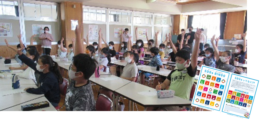 様々な世代の方を対象に実施している出前講座では、SDGsをよく知らない方向けに、SDGsの概要や、SDGsに取り組むべき理由、SDGs達成のための個人でできる取組、市内企業等の事例などをお伝えしており、市内の小中学校や地域団体、各企業など、幅広い方々に受講いただいております。また、令和3(2021)年度に、子どもたちが遊びながら学べるSDGsビンゴを取り入れたジュニア向けの出前講座も開設し、子どもたちにも、楽しく学んでいただいております。
