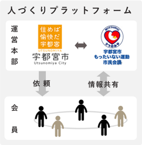 宇都宮市SDGs人づくりプラットフォーム(以下、「プラットフォーム」という。)は、市民や事業者のSDGsの認知度向上や理解促進を目指し、令和2(2020)年1月にもったいない運動※の普及に取り組む「もったいない運動市民会議」と宇都宮市を中心にして設立しました。