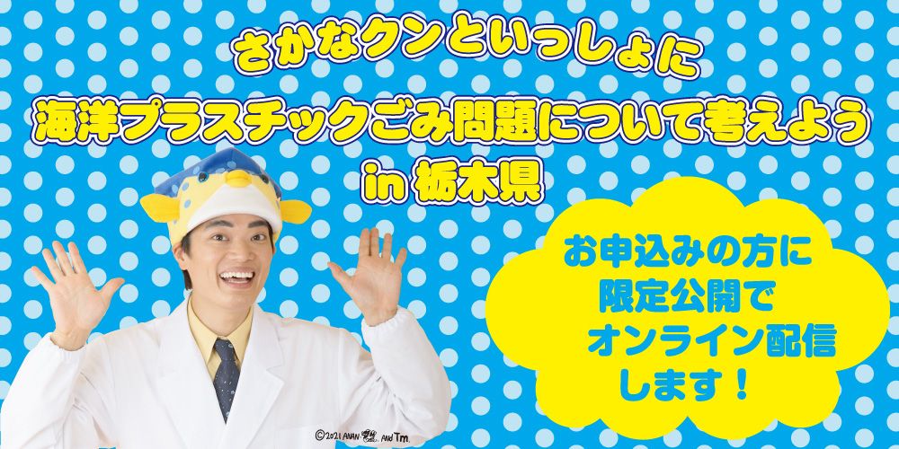 プラスチックは、私たちの生活に利便性と恩恵をもたらす欠かすことのできない素材です。しかし、現在、使い捨てプラスチックをはじめ、陸上から海洋へのプラスチックごみの流出などにより、地球規模での環境汚染が懸念されています。このような「海洋プラスチックごみ問題」について、魚類学者でイラストレーターの“さかなクン”といっしょに考えませんか?栃木県内に在住/通学する小中学生のみなさんと、そのご家族のご参加をお待ちしております。