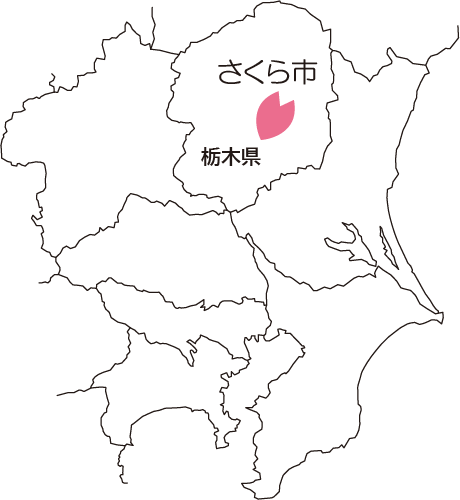 さくら市は、栃木県の中央部やや北東よりで、の東北縦貫自動車道、国道4号、国道293号、JR東北線等が通り、東京から車でおよそ150分、新幹線等でおよそ70分で連絡します。